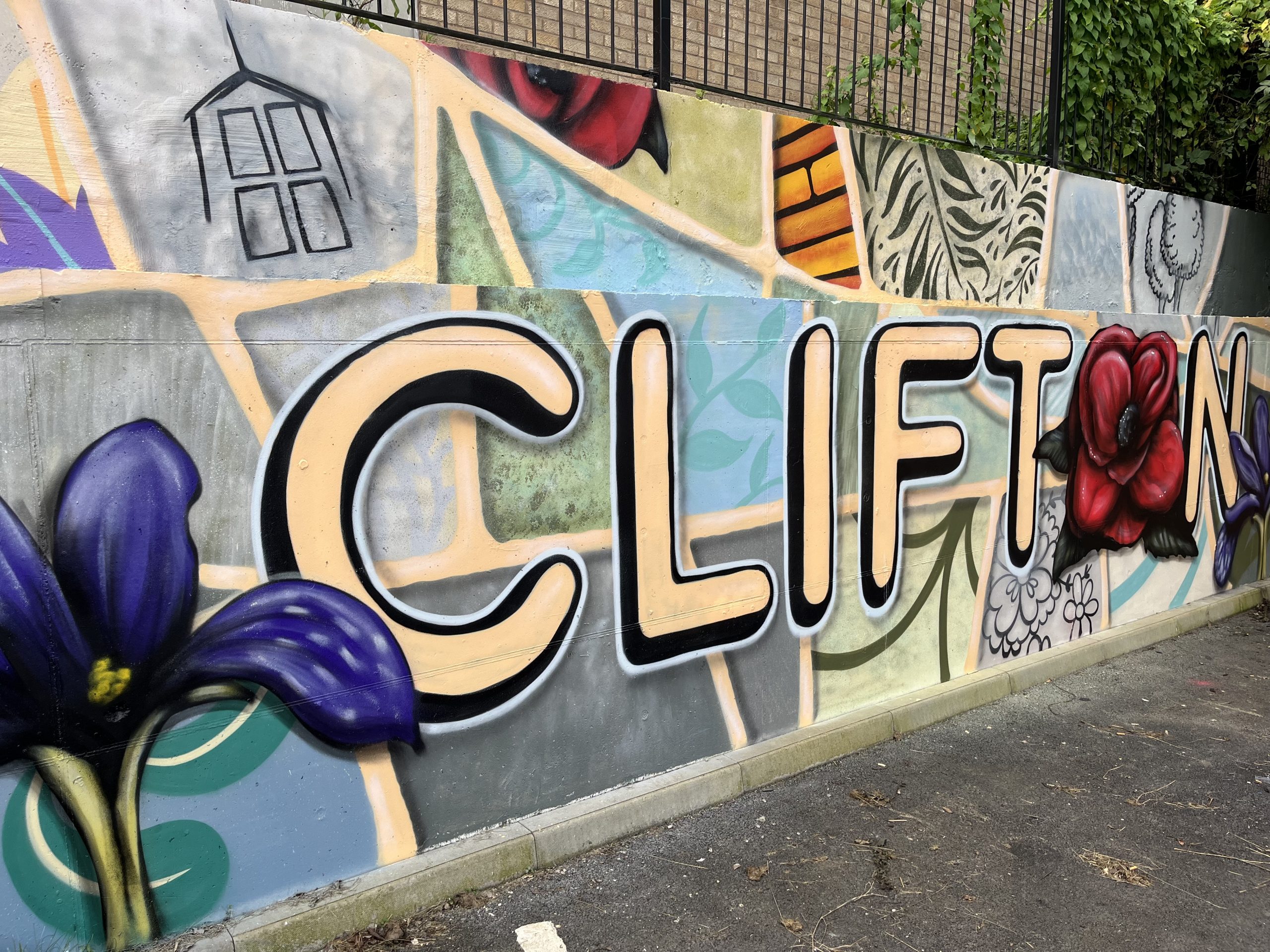 The mural at the new Clifton housing development was designed by Farnborough Academy and installed by Nottingham-based artist Nathan Bainbridge,